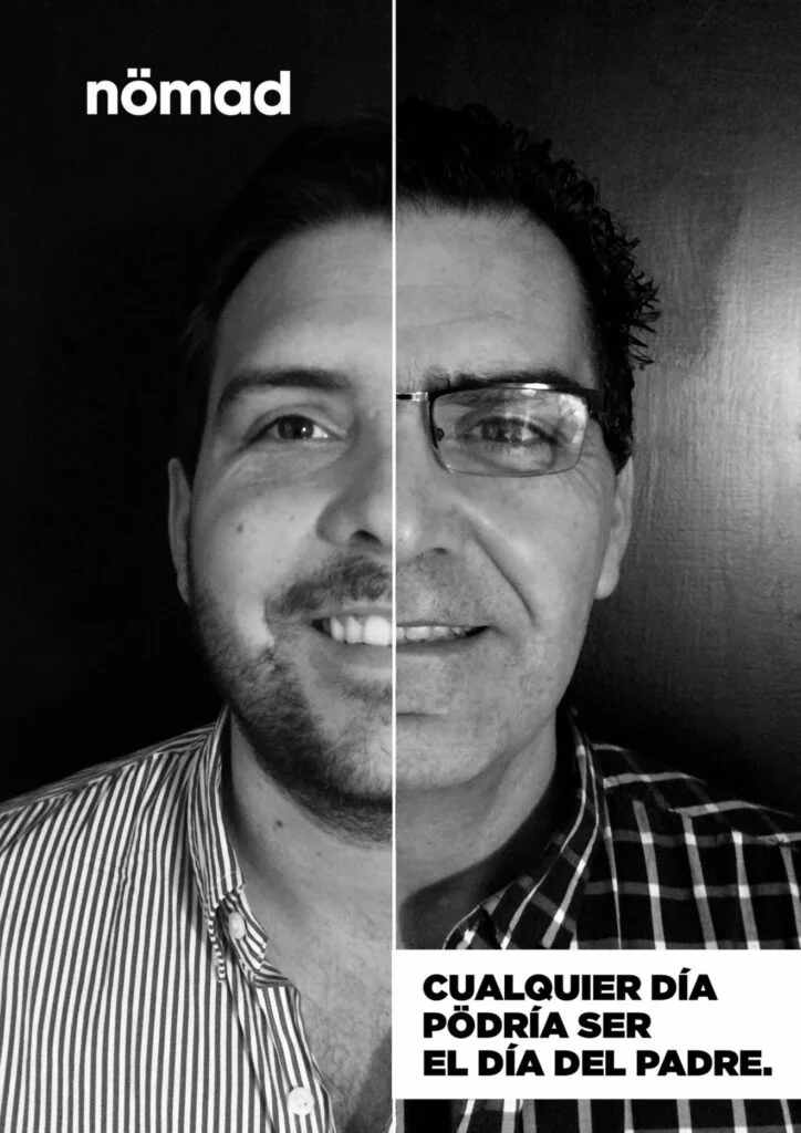 En esta ocasión, quisimos homenajear a nuestros padres. Intentamos con está gráfica elevar al más alto grado emocional el sentimiento hacia ellos. Que mejor formar que decirles gráficamente que somos parte de ellos, que lo llevamos en los genes y que eso jamas cambiará. De ahí el título que escogimos para esta acción, “cualquier día podría ser el día del padre”