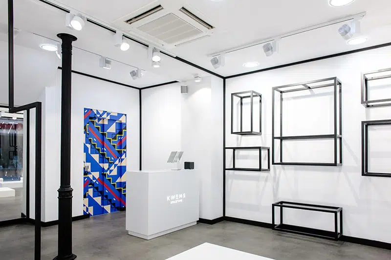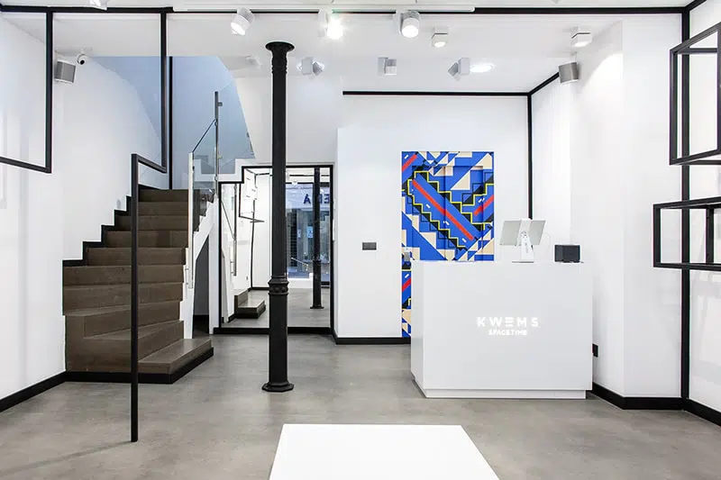 Tras el diseño de la identidad, la diseñadora Olivia Mbia nos encargó el diseño retail de su primera tienda en Sevilla. El diseño está basado en la concepción de las tiendas de Kwems como spacetime con una estética limpia basada en el B/N y toques de estampados africanos que aluden directamente a los tejidos utilizados por la diseñadora.