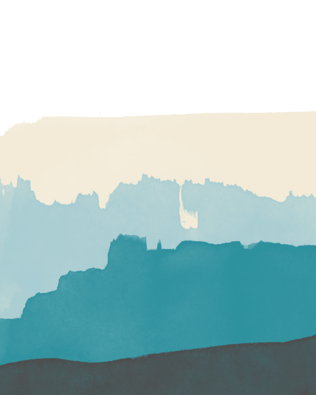 La gama de colores y el uso de degradados se inspiran directamente en los paisajes que acompañan a la familia en sus viajes: desde los tonos crema y arena que evocan materiales naturales y territorios áridos, hasta los azules suaves y turquesas que remiten al agua, al cielo y a la calma de los entornos artesanales. Esta transición cromática genera una sensación de profundidad, textura y serenidad que conecta con el carácter hecho a mano de sus productos.