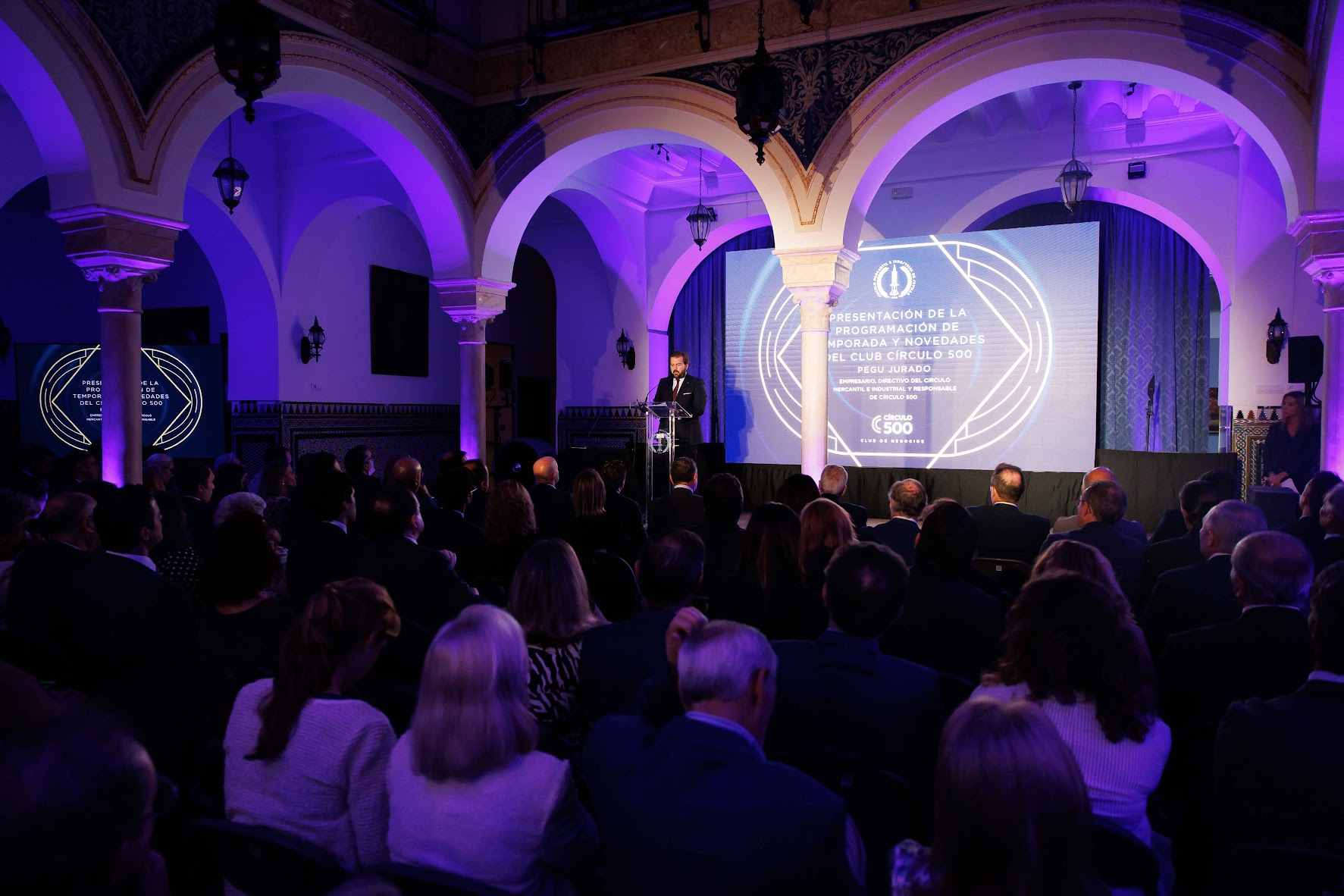 Desde Nömad, nos encargamos de la organización de eventos de Círculo 500: diseño de identidad de los eventos, diseño de pantallas del evento, guiones y locuciones, gestión de proveedor de iluminación y sonido, búsqueda y contratación de ponentes y presentadores…
